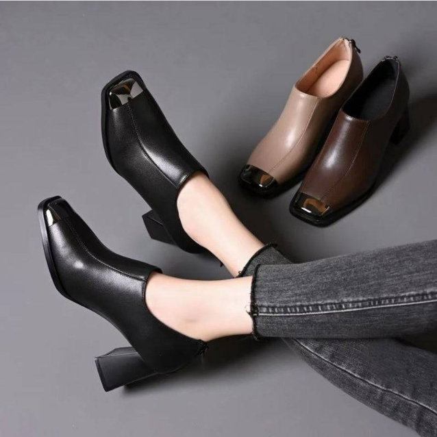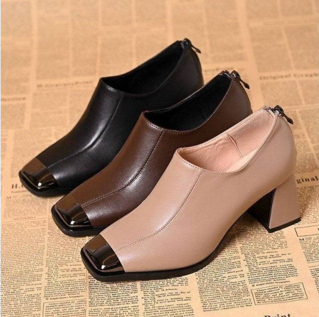 20分鐘前40% 折扣,售完即止! 女士方頭粗跟拉鍊鞋 - 買一雙